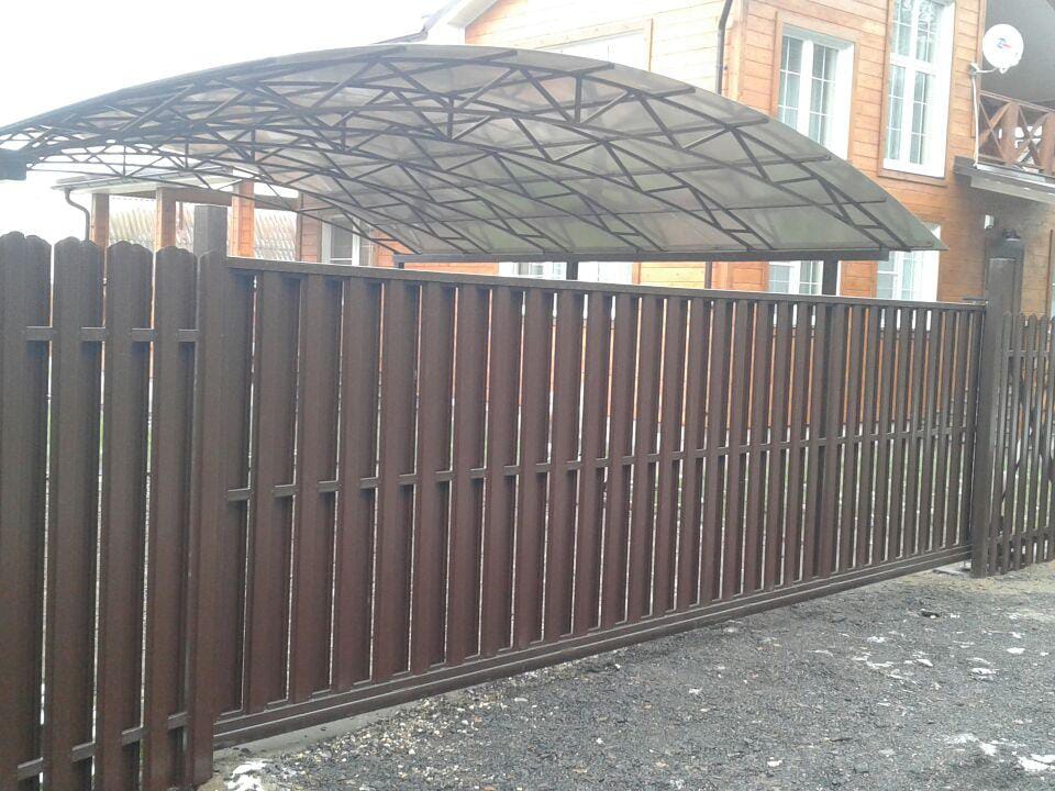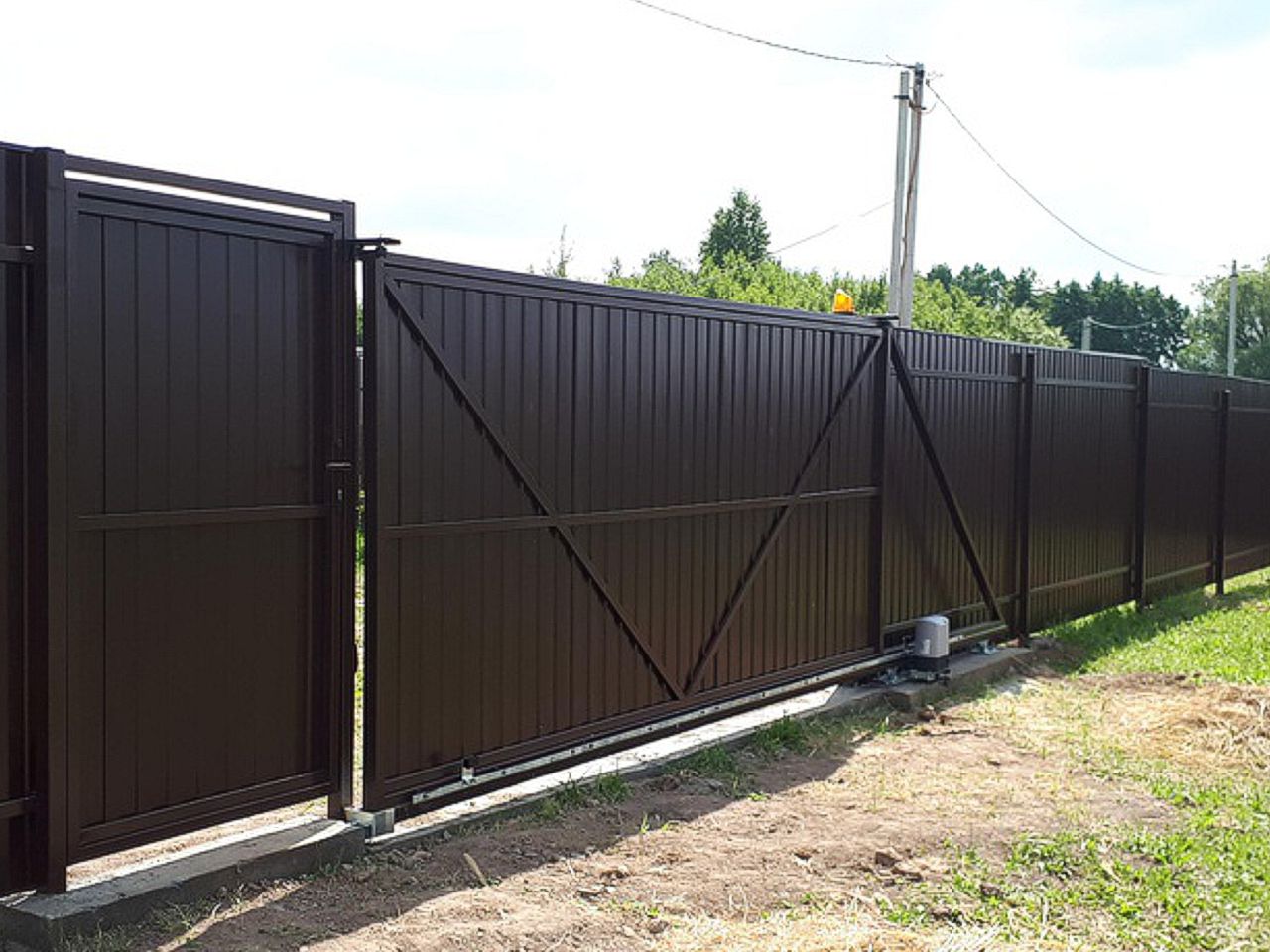Откатные ворота из профнастила на винтовых сваях (цена на бетонном основании +20000р)